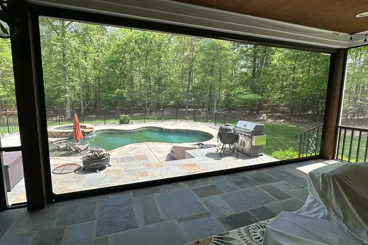 Our new exterior solar shade on the back patio is a total game-changer. It keeps the sun off the pool area in the afternoons and gives us a ton of privacy without losing the view. The setup blends perfectly with our outdoor design, and it’s easy to use — we can’t believe we waited this long to add it. The whole process from consultation to installation was seamless.